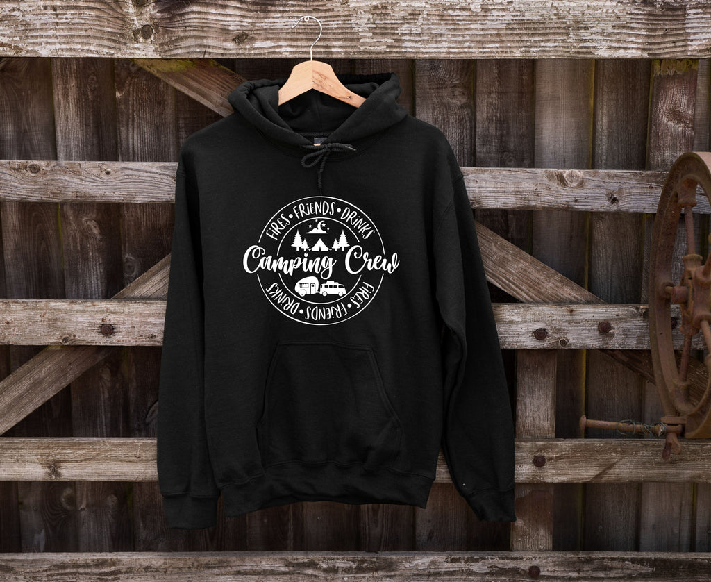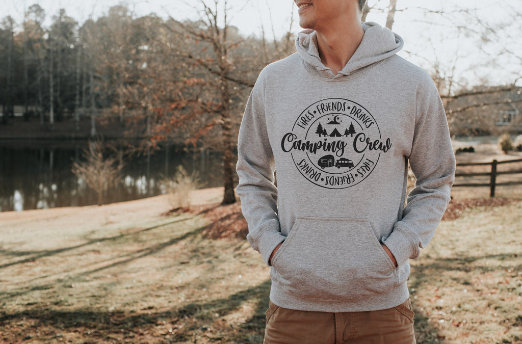 Stay warm and stylish with our Camping Crew sweatshirt and hoodie! The crewneck offers a classic fit, while the hoodie provides extra coverage. Perfect for chilly outdoor adventures, these comfortable pieces will keep you cozy (and looking cool) on your next camping trip.