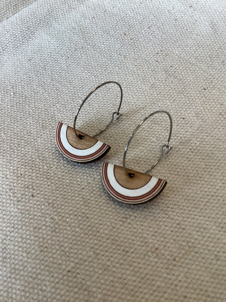Expertly crafted in Revelstoke, these half moon dangle earrings feature a unique "sick chick" design that is hand painted on wooden material. Elevate any outfit with these one-of-a-kind accessories.