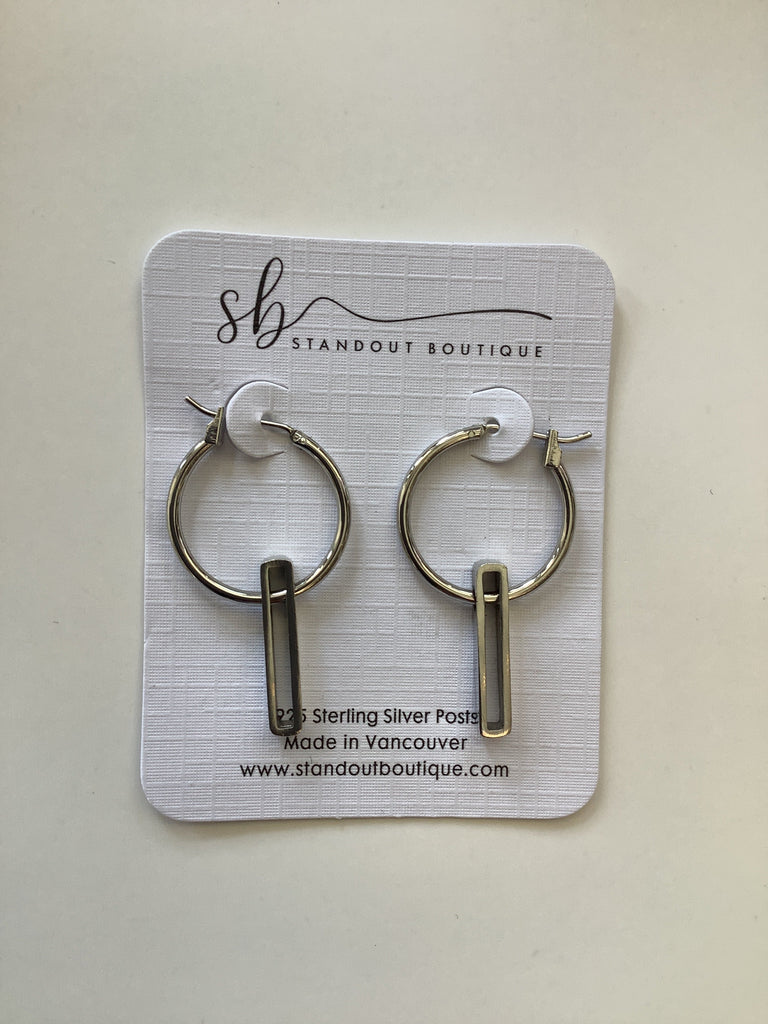 Silver Hoops With Dangle Post Earrings - Standout Boutique( Vancouver, BC)
