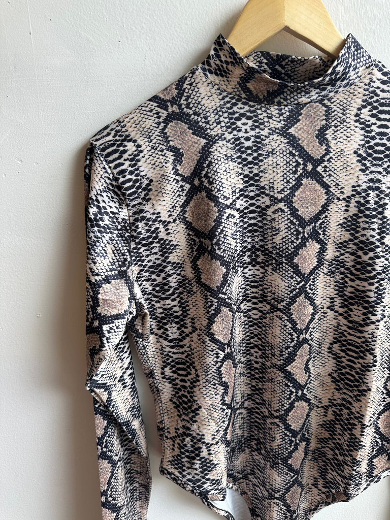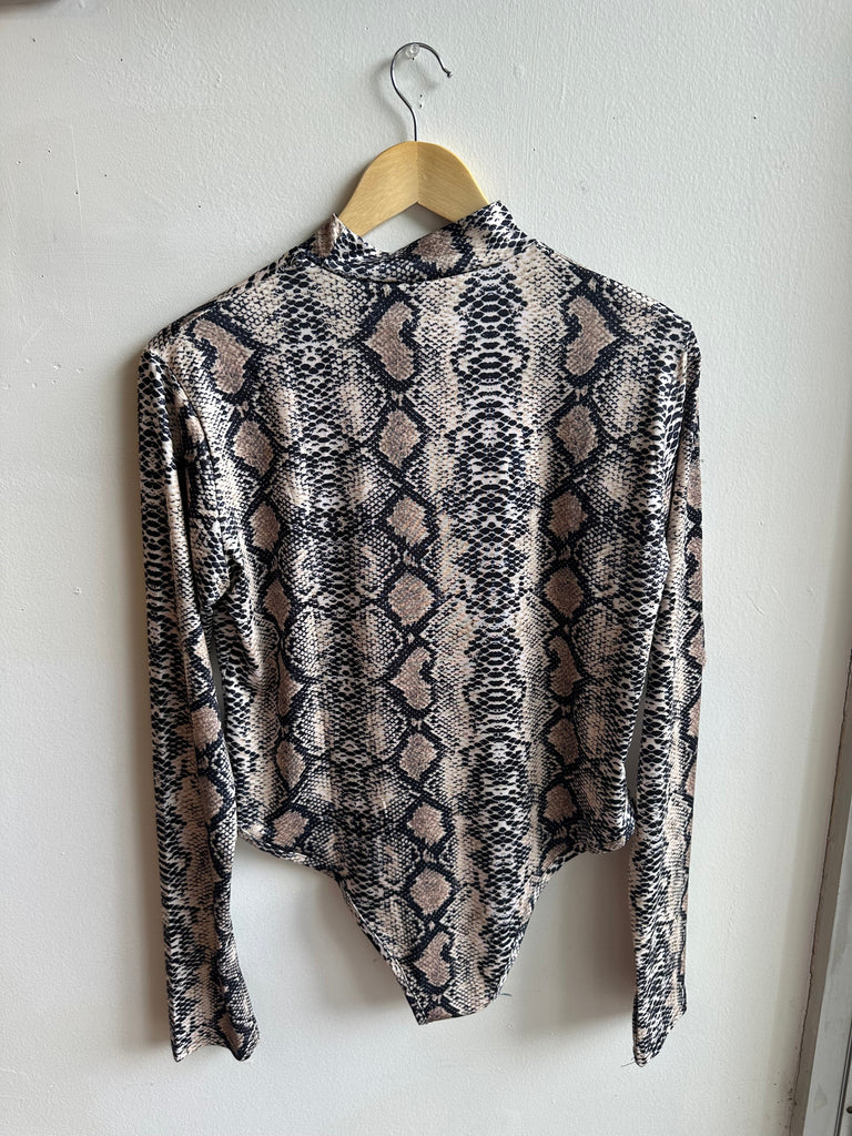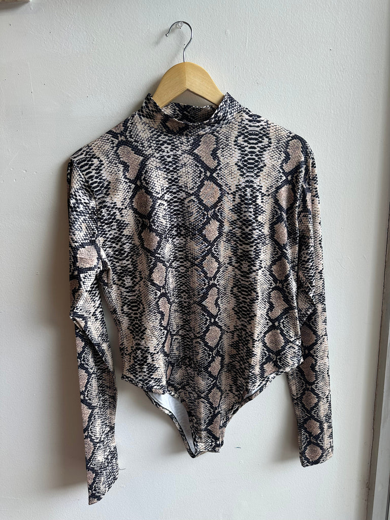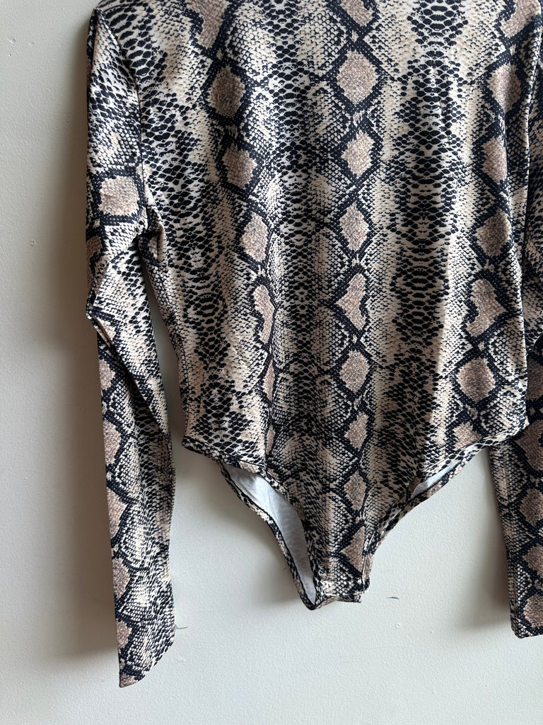 Snakeskin Print Long Sleeve Bodysuit – Tagged XXL, Fits Like Large