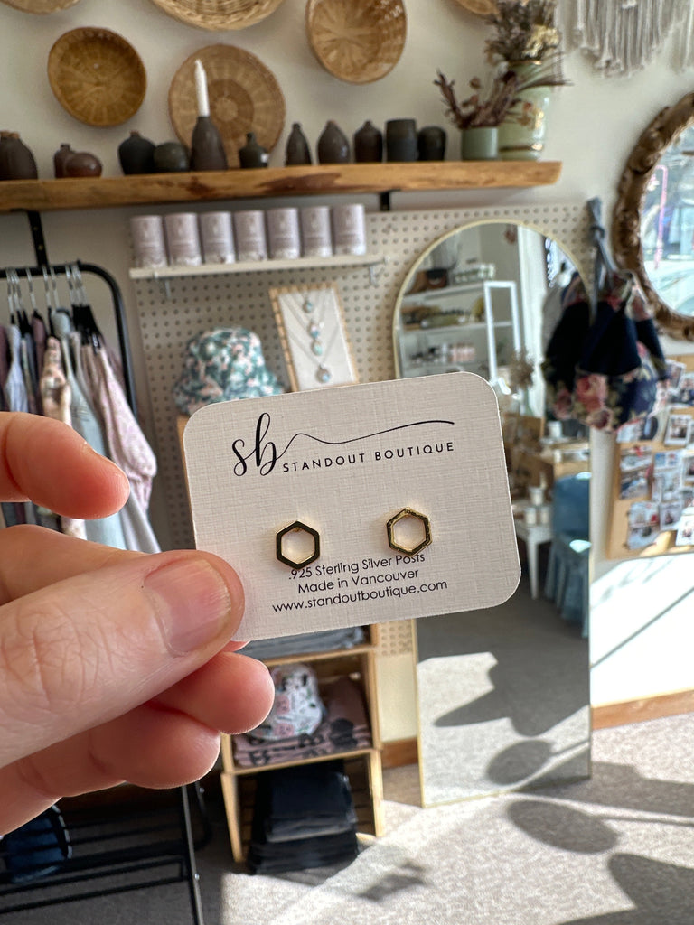 Standout Boutique Hexagon Gold Studs