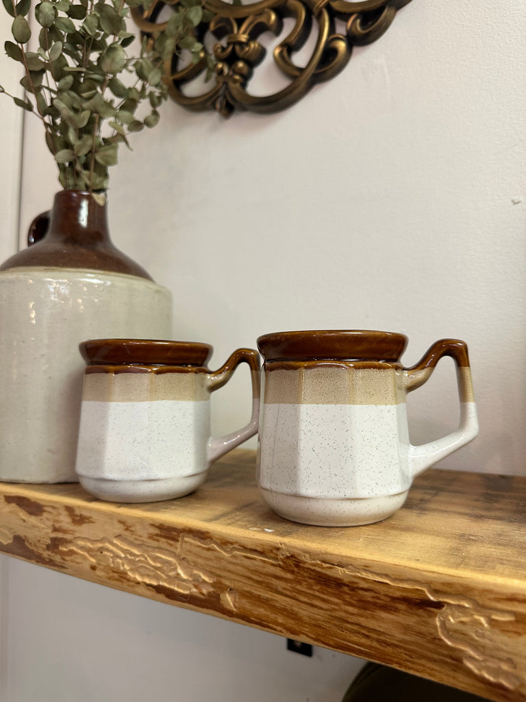Vintage 70s Two Toned Ceramic Coffee Mugs Set of 2