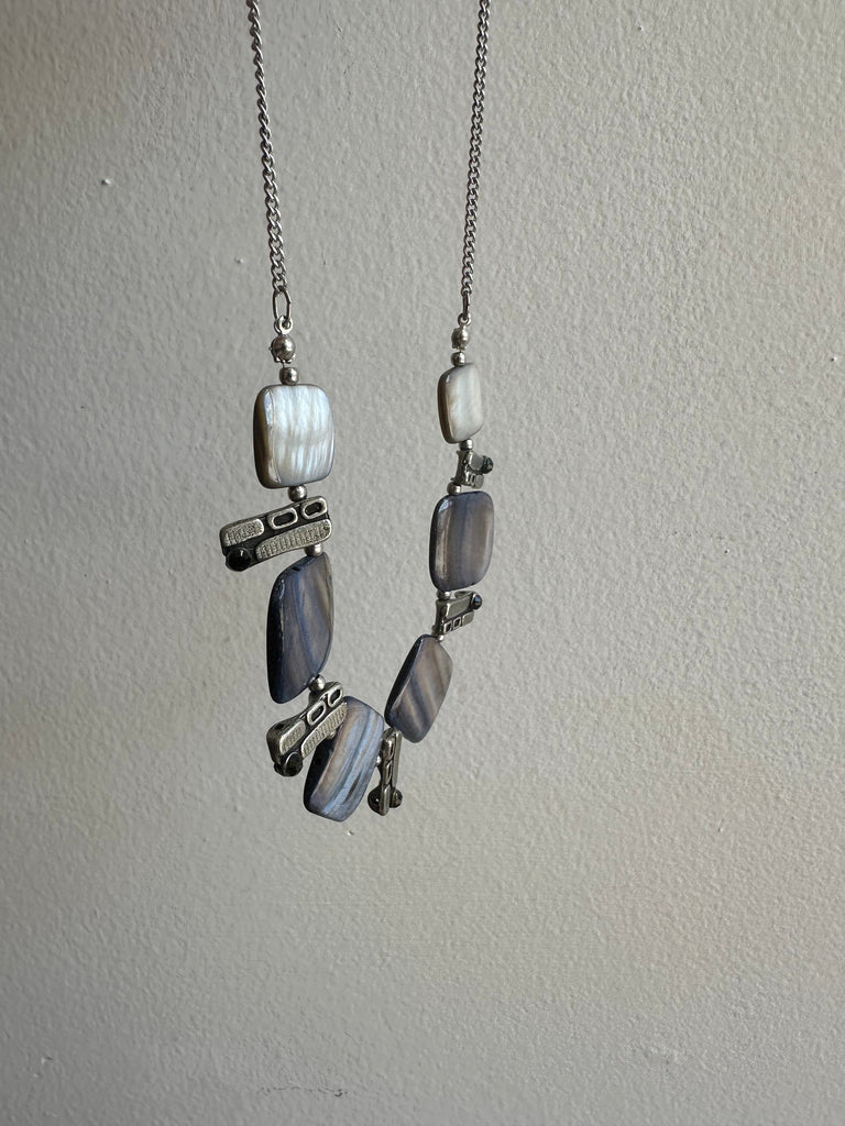 The Vintage Blue Shell Statement Necklace is a captivating piece that effortlessly combines boldness and elegance. Featuring striking blue shell accents, this necklace showcases unique textures and vibrant hues that catch the eye. The design is both artistic and sophisticated, making it an ideal accessory for those who wish to make a statement. Perfect for adding a pop of color to any outfit, this necklace will undoubtedly become a cherished favorite in your collection.