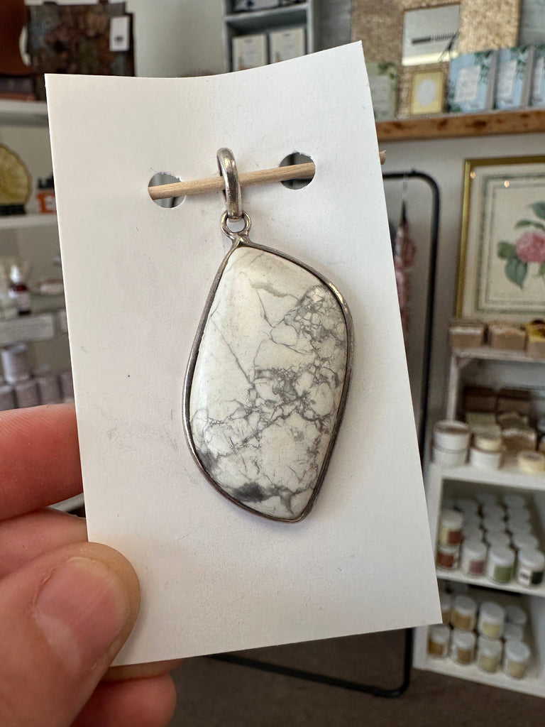 Vintage Howlite Leaf Shaped Silver Hand Crafted Pendant