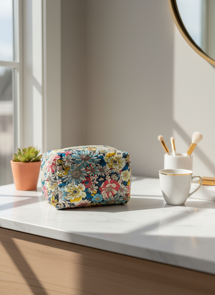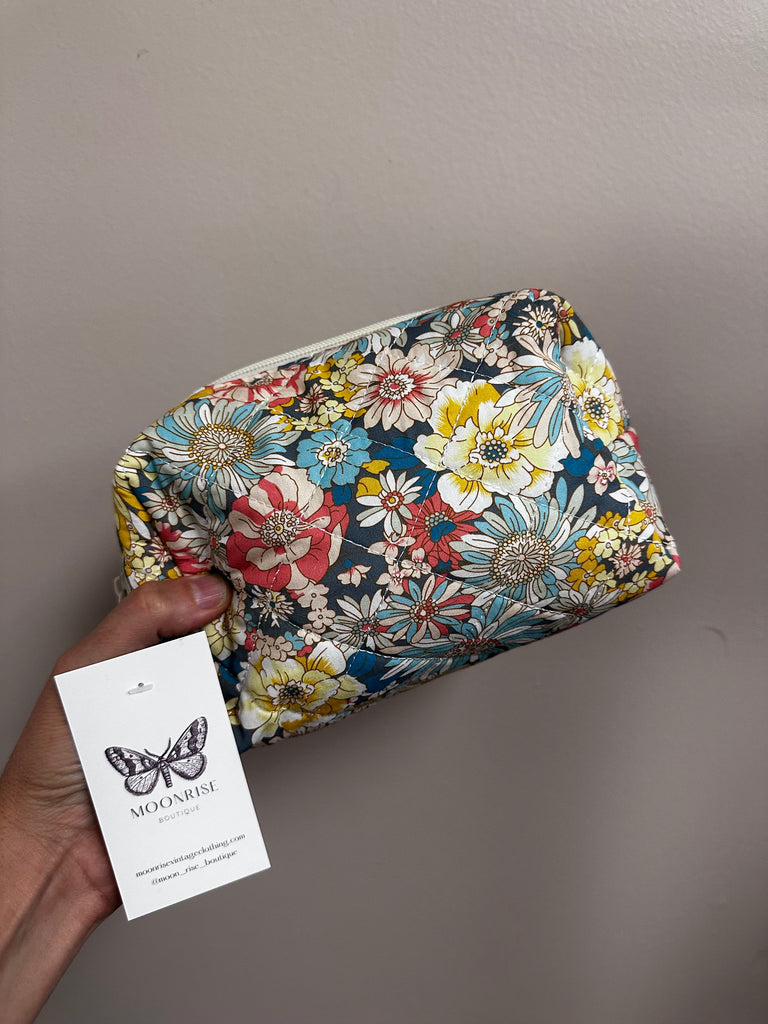 This darling quilted travel case is giving big cottagecore energy with its vibrant vintage floral print and soft, structured shape. Perfect for stashing cosmetics, toiletries, art supplies, or crystals on the go, it features a top handle, full zip closure, and a lightly padded interior to keep your treasures safe. Lightweight and charming with a practical twist—it’s as cute on your shelf as it is in your suitcase.