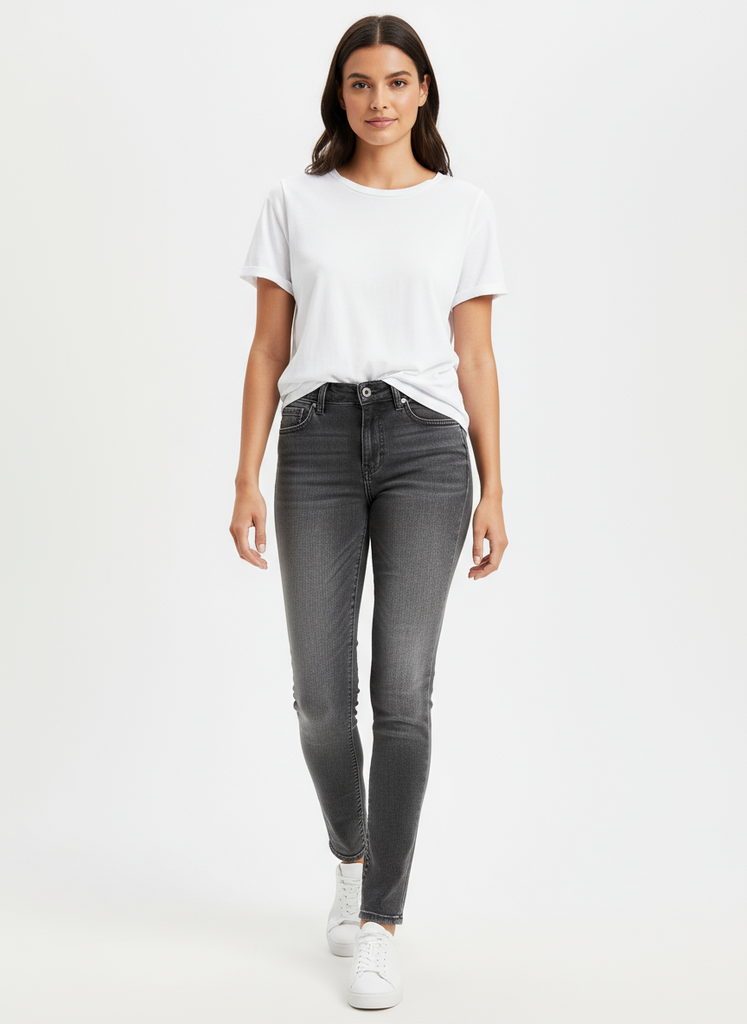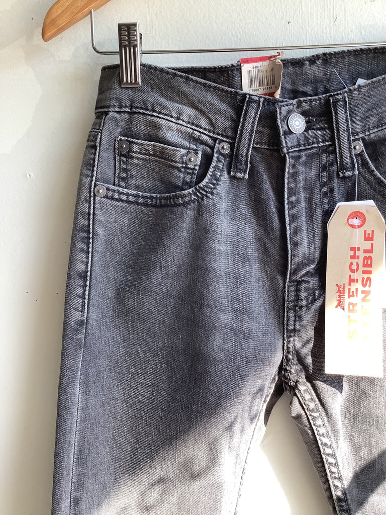 Sleek and modern, these Levi’s 519s are designed for a super-skinny fit from hip to ankle. Featuring a versatile washed black/charcoal finish with stretch for comfort, they’re perfect for styling up or down. Classic Levi’s details include the red tab, leather patch, and five-pocket design.