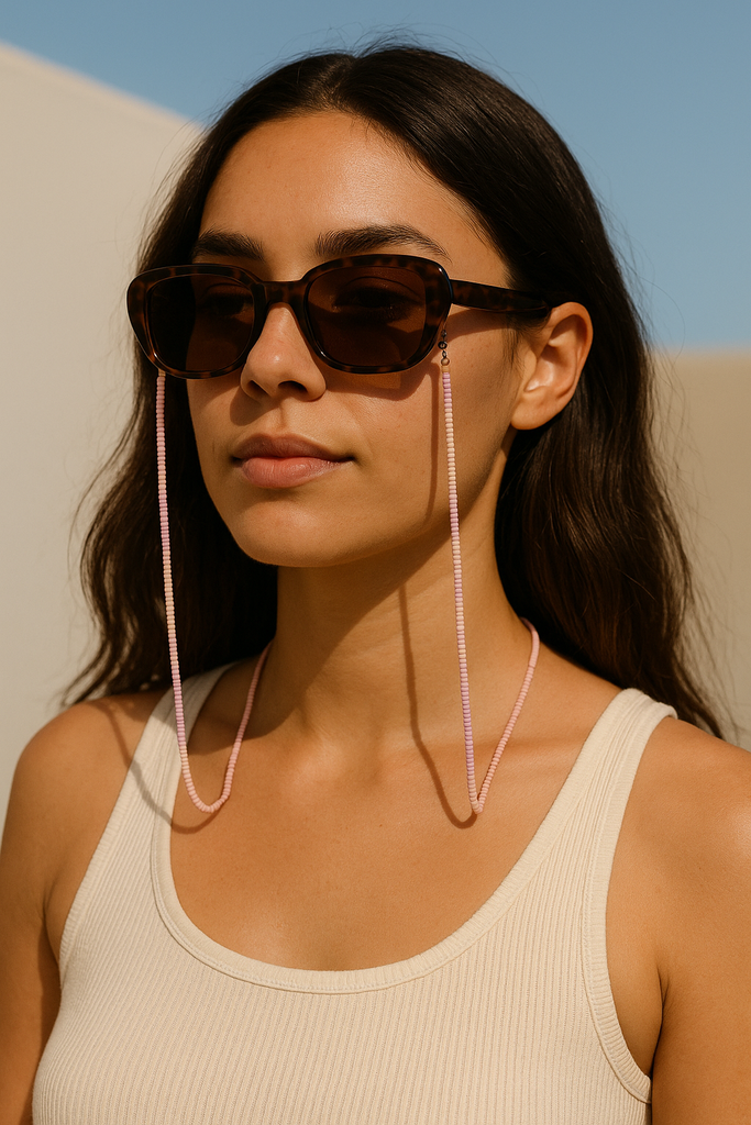 Soft, beachy, and effortlessly cool—this blush pink beaded sunglass chain is your new summer essential. Hand-strung with delicate seed beads and adorned with natural cowrie shells, it brings subtle coastal charm to any pair of sunnies. Lightweight and laid-back, it’s perfect for sunny markets, road trips, or lazy days by the lake.