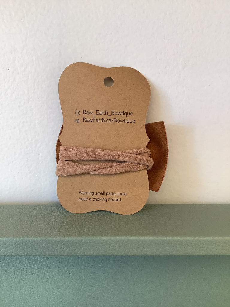 Elevate your hair game with the Raw Earth Bowtique Clay Lace Print Headband. Made in the artisan town of Kaslo, BC, this headband boasts a unique clay color and intricate lace print. Perfect for adding a touch of elegance to any outfit.