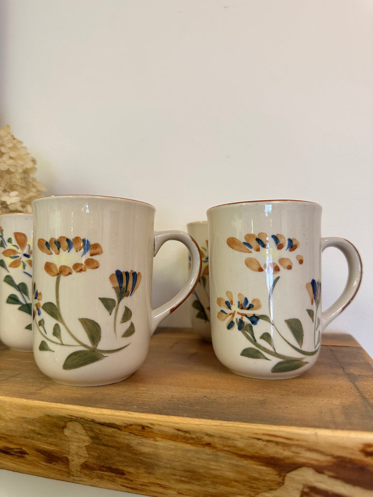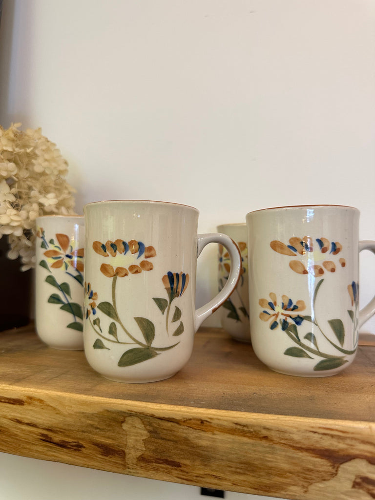 Vintage Cream + Floral Set of 4 Coffee Mugs