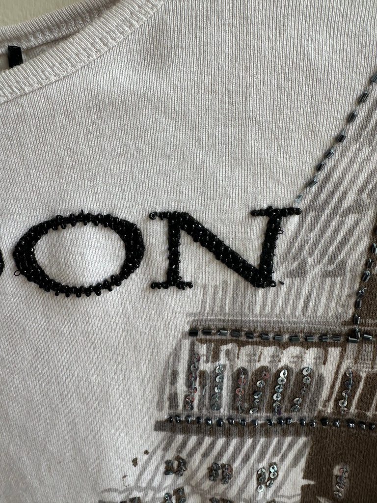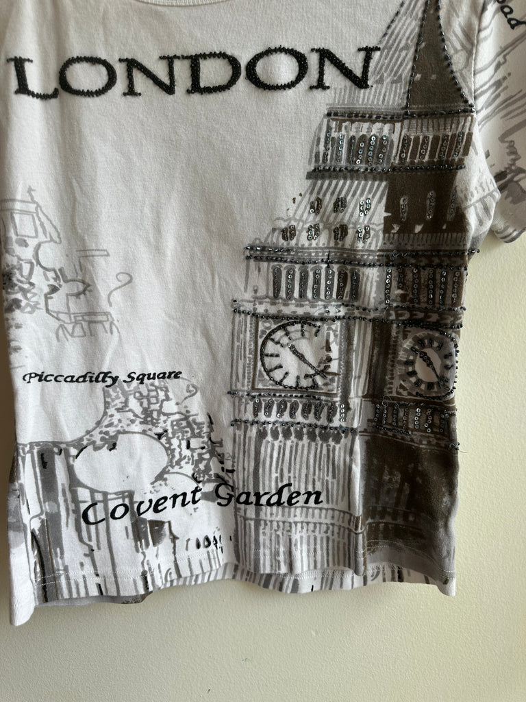 Y2K London Graphic Tee with Rhinestone Detail | Size Medium