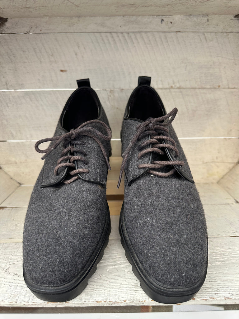 The Zara Grey Oxford Platform Loafers in Women's Size 7.5 combine classic elegance with modern style. These loafers feature a sleek grey finish and a timeless Oxford design, elevated by a subtle platform sole for added height and comfort. Perfect for both casual and professional settings, these shoes provide versatile styling options without compromising on sophistication. Crafted from high-quality materials, they promise durability and long-lasting wear. Ideal for the fashion-forward individual looking to make a statement with their footwear.
